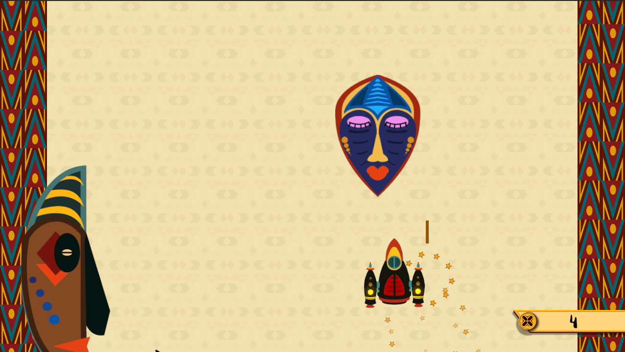In a colorful cooperative arcade game, control a rocket stuck in an African tapestry. Try to get the best possible score in a 2 players game in which each player controls one direction!